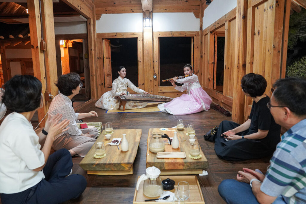 저녁 시간에는 ‘최부자집 과객 체험’에 참여하는데, 일반 관람객들이 다 돌아간 이후 전문 가이드의 해설을 들으며 한적하고, 꼼꼼하게 최부자 고택을 둘러봅니다. 집의 구조와 역사에 얽힌 흥미로운 이야기를 들을 수 있습니다. 사랑채에서 다과를 들면서 대화도 나누고, 국악 공연도 봅니다.